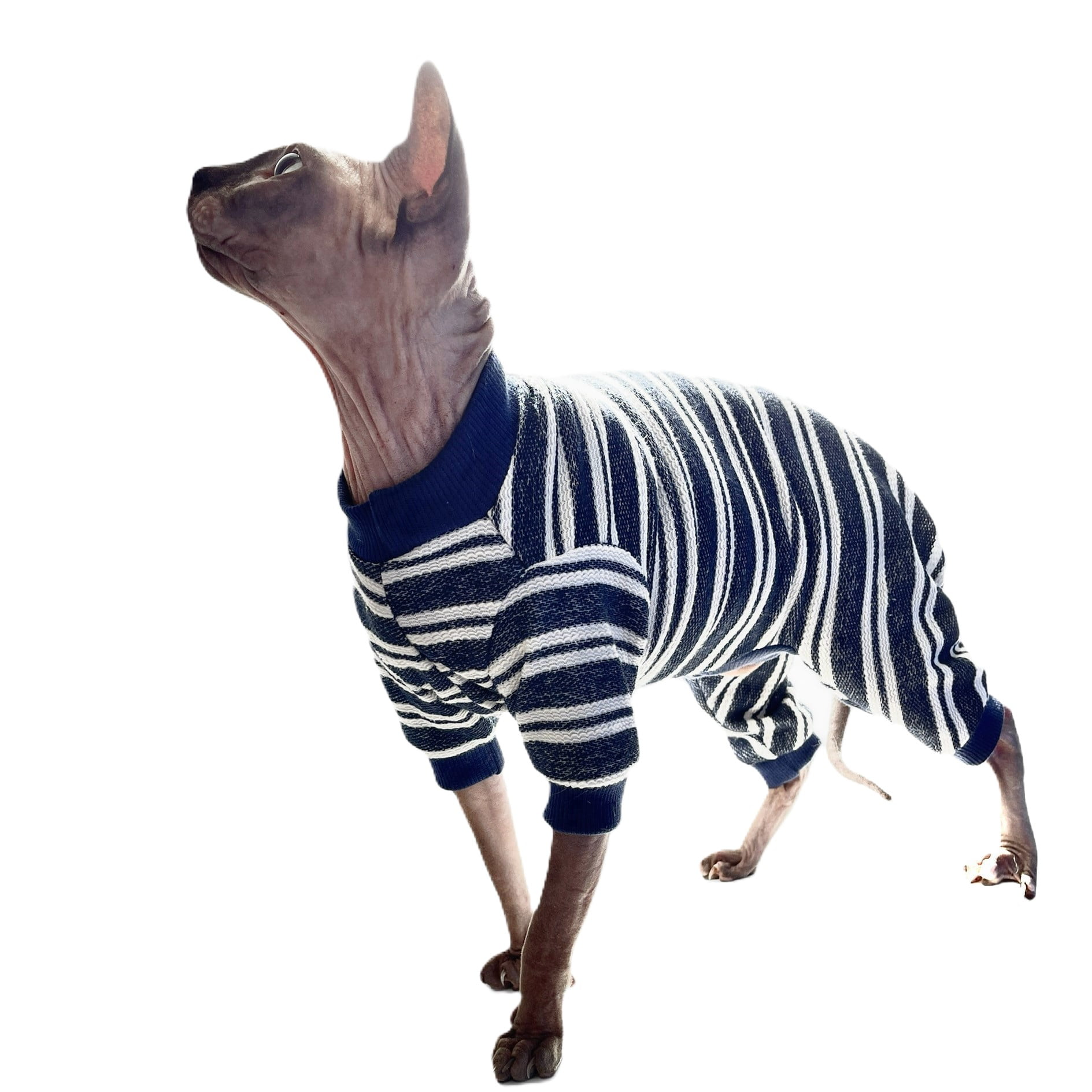 We pride ourselves on being able to provide cat owners with cat clothes that have an amazing quality, comfort and fit at affordable prices. All our sphynx cat clothes are suitable for all cats, and come in a range of sizes and fabrics. And not only that, but you will also find a large range of different garments available. From our standard t-shirts to different style of suits, each item is handmade to order with care and attention that you would expect to receive. ALL UK orders over £45 qualify for a free delivery.